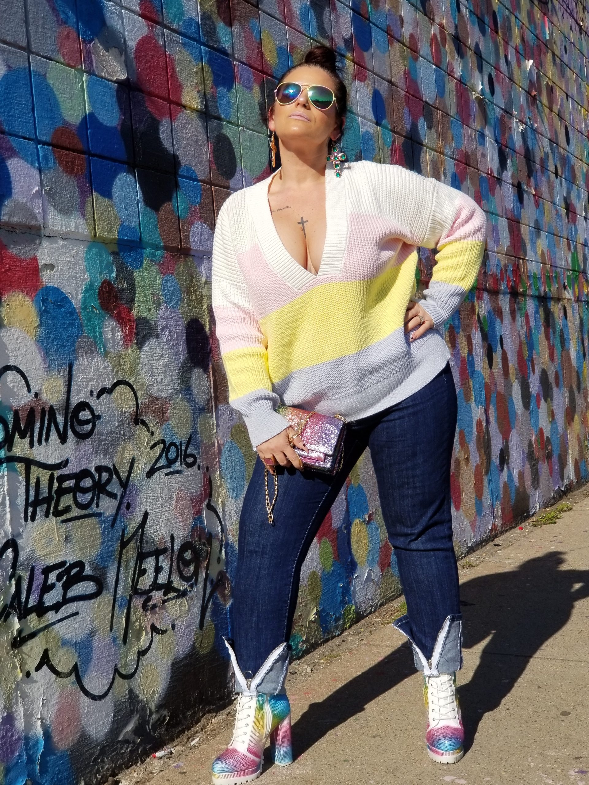 For a fashionista like myself who loves to showcase her outfits to the world in places I go and visit, I have been limited in doing so (like we all have), especially with everything shut down because of C-Virus….except, the GREAT OUTDOORS! These last couple of days, it seems like loungewear is the new OOTD norm. But eff that// Imma still be me, with putting on my best dressed and a full face of makeup even if it means I am just taking a ride with my husband, talking and listening to our favorite jams, and of course stopping to take a few pics😉. No place to go but looking hella cute ya’ll** ~~Zip Up Jeans from FN, Pastel color-block sweater from Forever 21 and pastel rhinestone booties made by Cape Robbin (one of my fav brands) from Akira. Sunglasses from Sunglass Spot and bag from YSL~~ In a time of uncertainty, bringing some type of normalcy back into your routine will keep your minds at ease. I still want to showcase my styles and fashion inspo with you and I will continue to do so, regardless if it means I ain’t going anywhere lol Practicing social distancing at it’s best. Just MOI, my outfits, my hubby and our cameras, of course. Get dressed, put that makeup on and strut your stuff!! Check out this ‘Spring Isolation Finesse’ ensemble I put together!! And check out the kolor of the month for ALL that pastel flava……