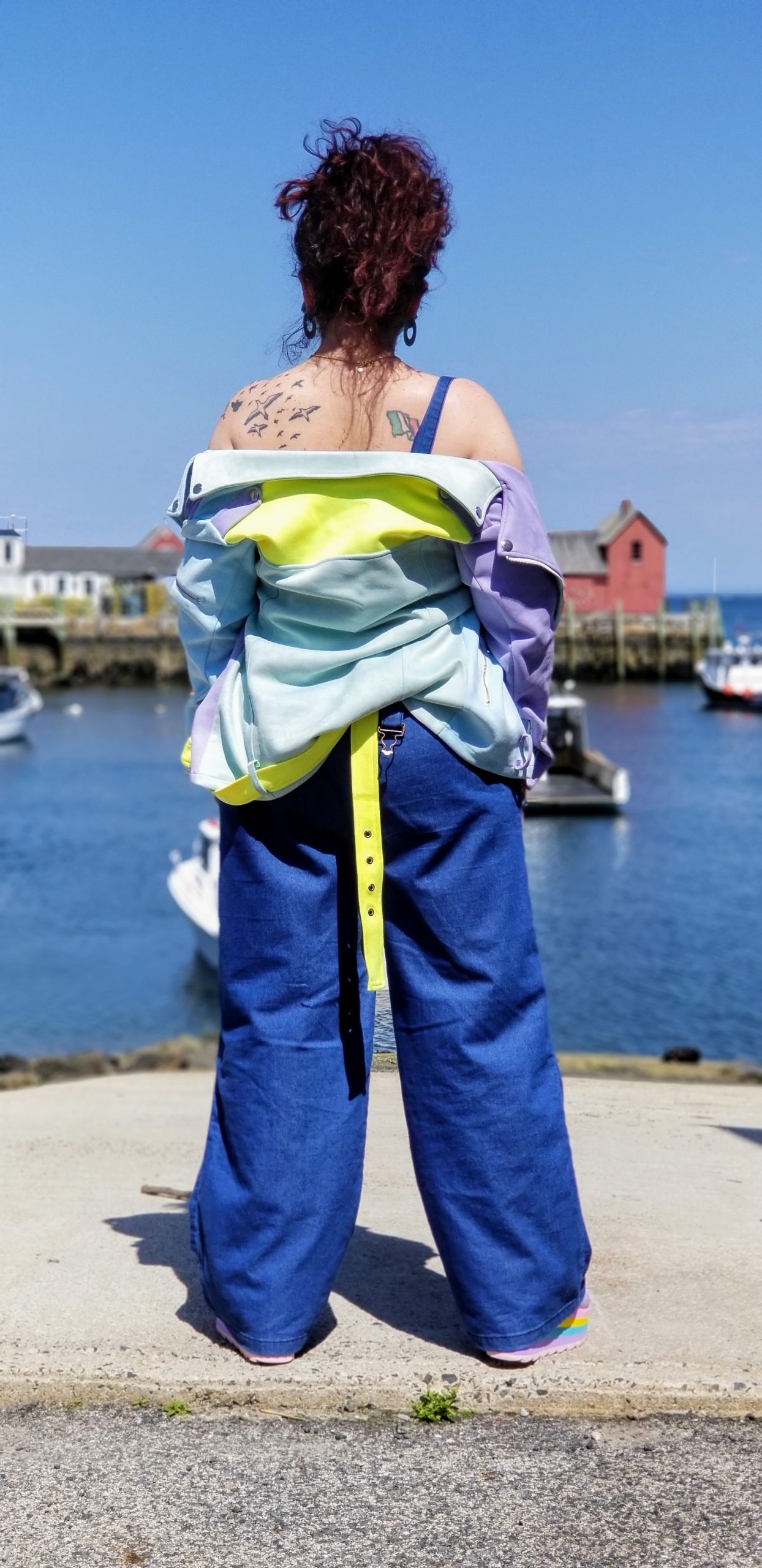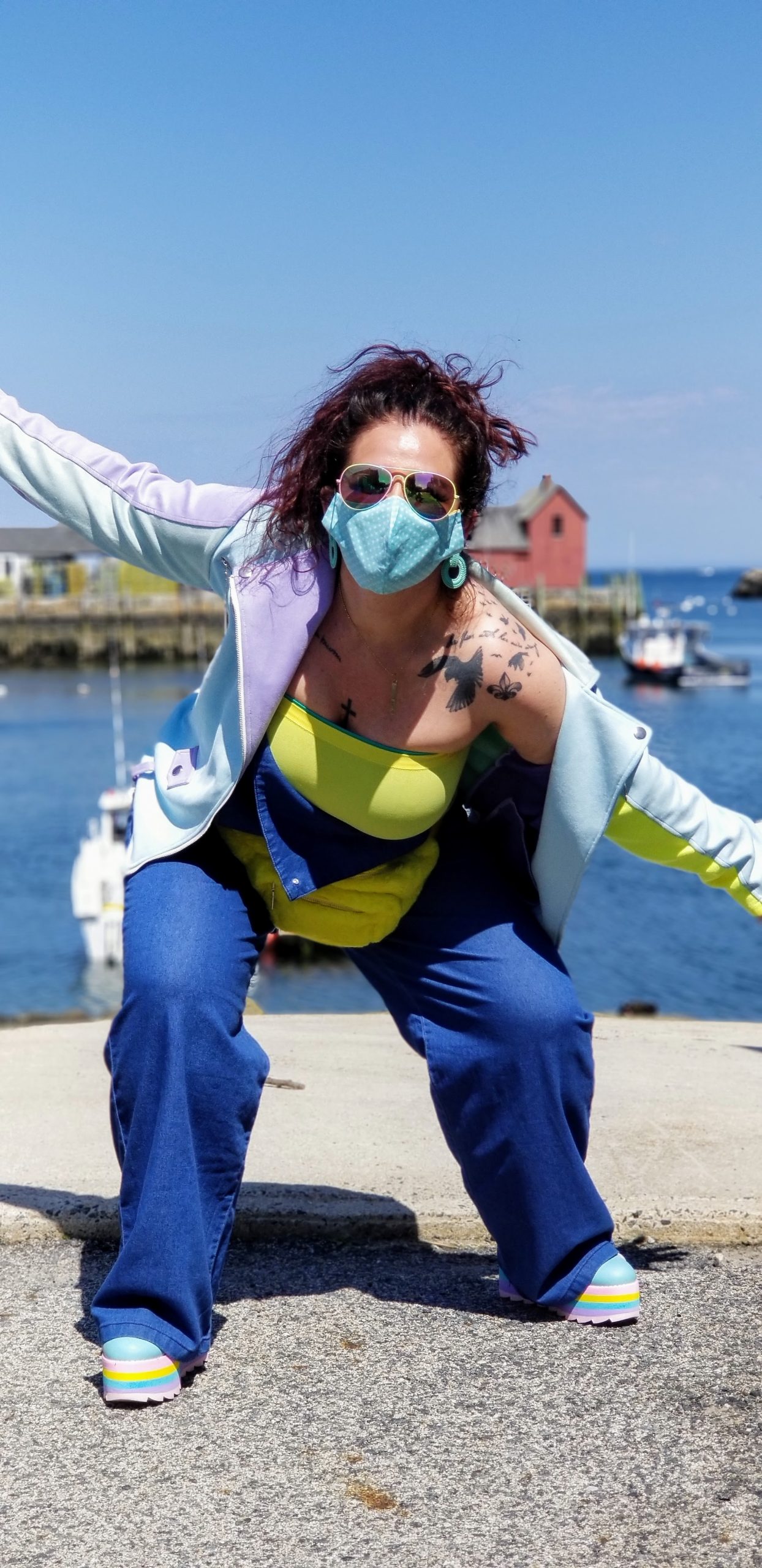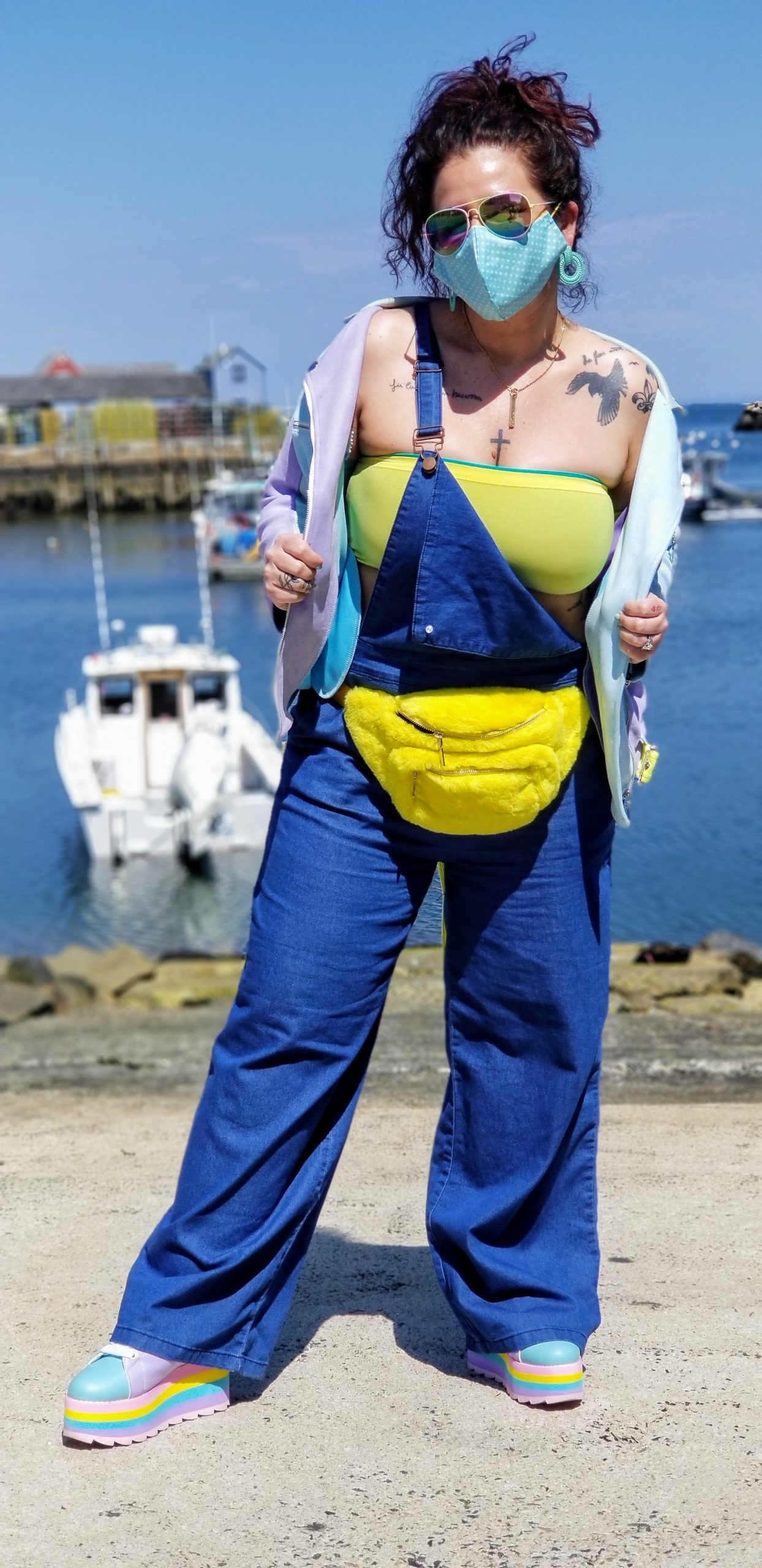 For that day, I was feeling all the sun and wanted to portray that sunshiny vibe with my outfit. I wore lightweight denim overalls (is that what it’s called now or a jumper….I don’t know, either way I rocked it) from Forever21Plus http://www.forever21.com, with a tube top type bra but had to double up because that was a little see thru and I didn’t think it appropriate to show of my girls to a quaint little fishermen town like Rockport. I threw on my light, fun and color block jacket from MVGIRLRU, busted out with my colorful and funky platform shoes from YRU and my bright furry fanny pack both purchased from http://dollskill.com, added my teal dangly earrings that I actually got for free from another online purchase and topped it off with my pastel ombré sunnies from http://sunglassspot.com. The perfect outfit for the perfect day! Side note: all the restaurants were closed on Sunday, so no food, but we still enjoyed the scenery. What is your perfect day getaway?