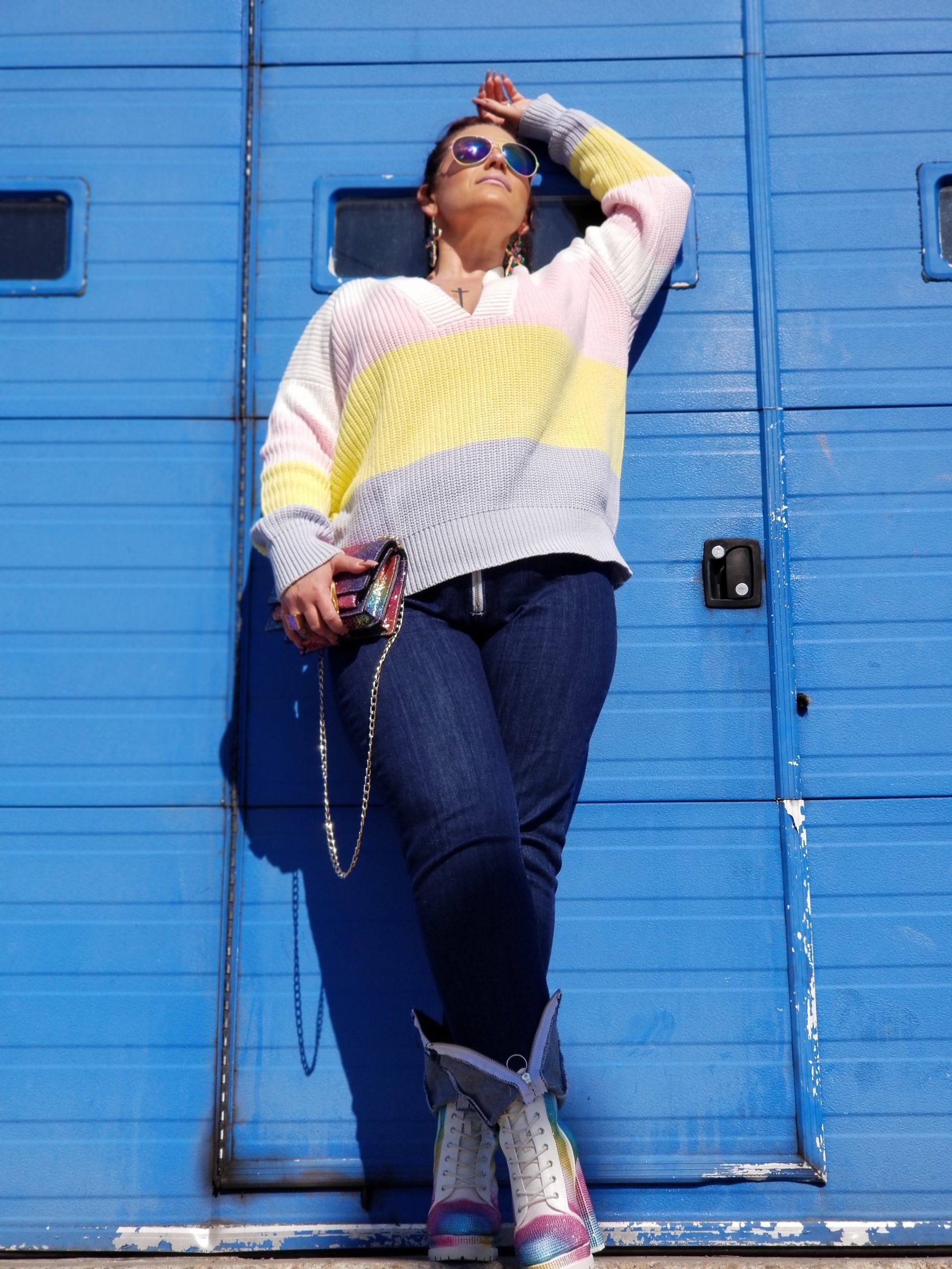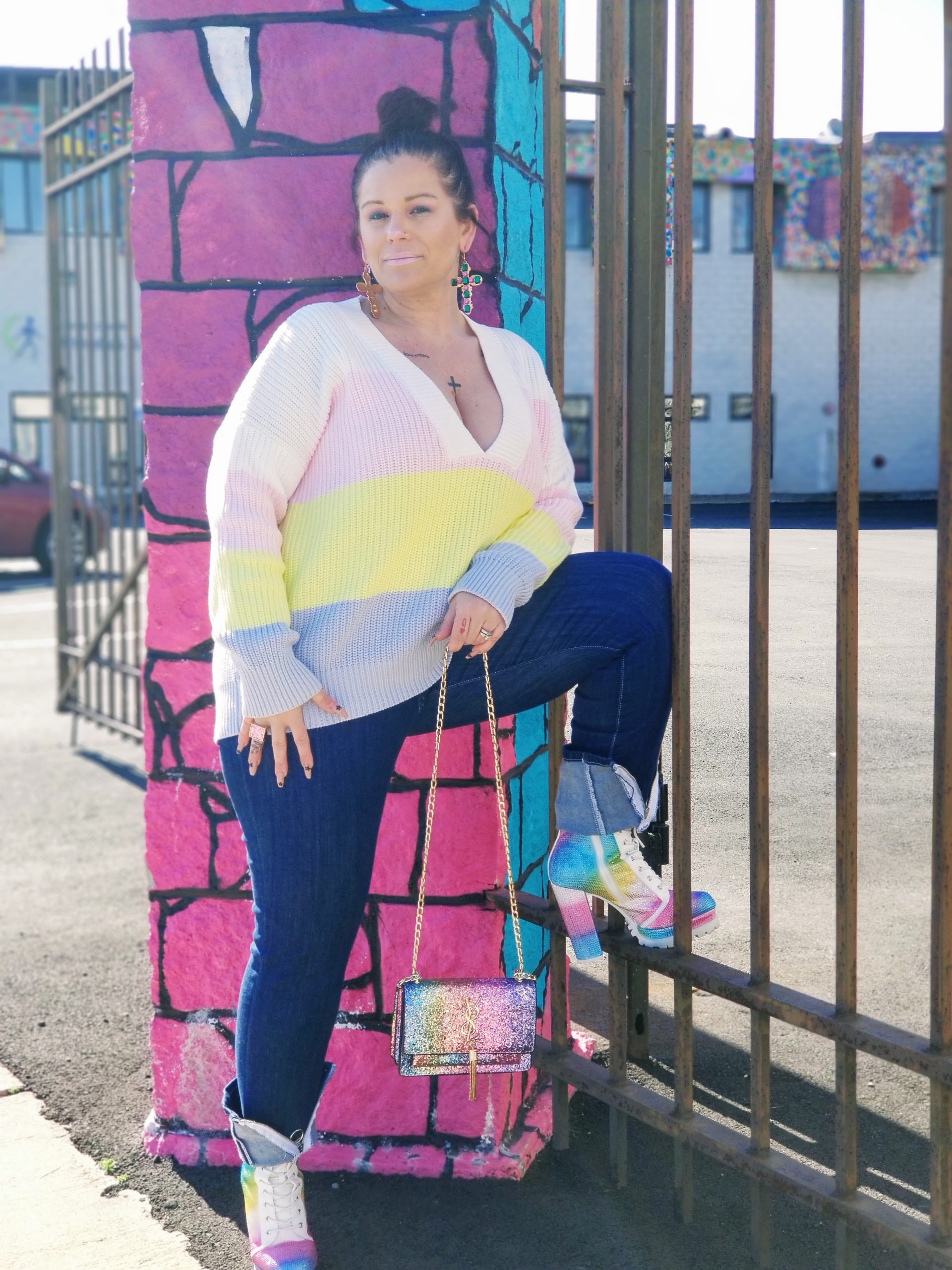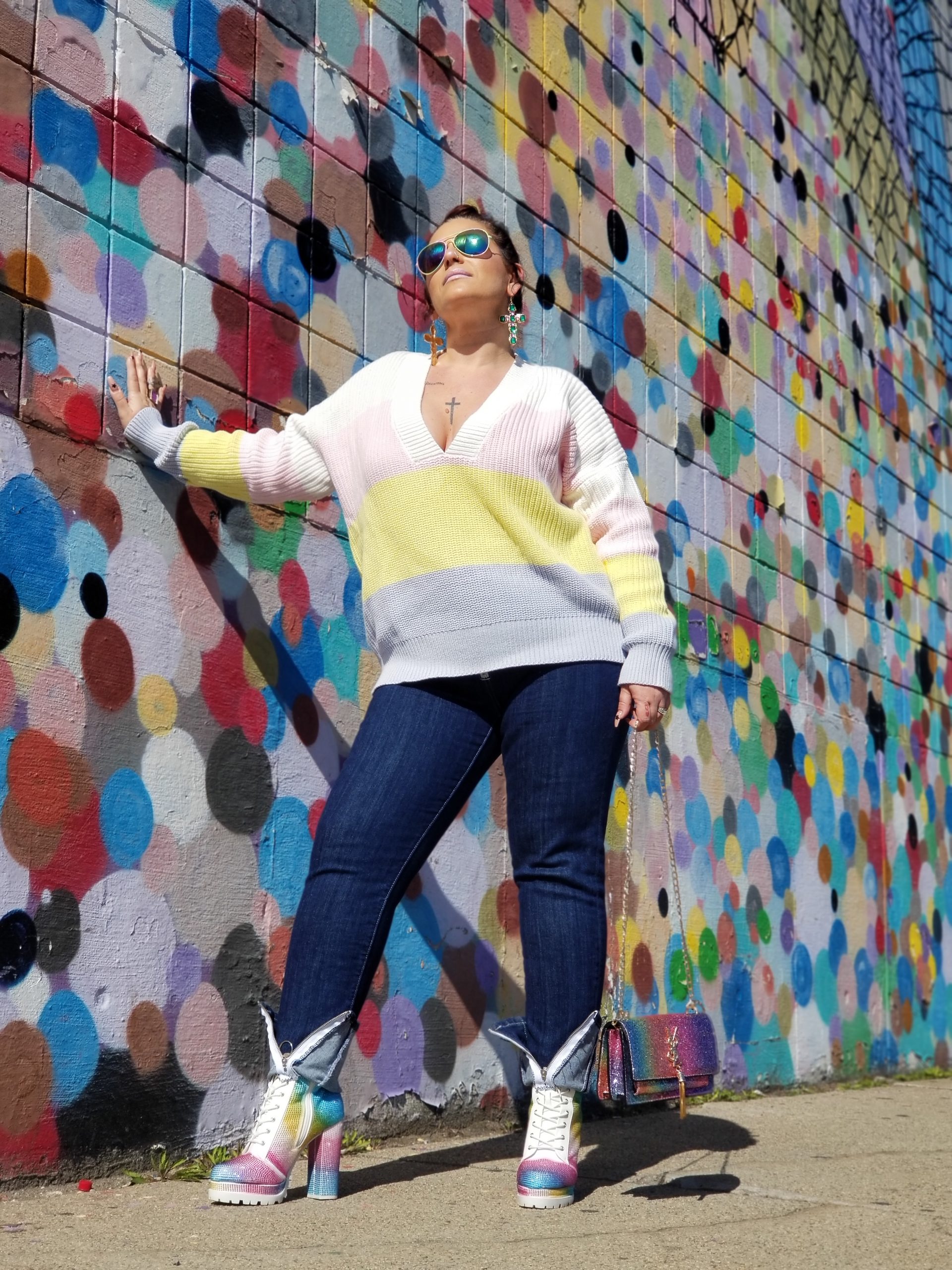 For a fashionista like myself who loves to showcase her outfits to the world in places I go and visit, I have been limited in doing so (like we all have), especially with everything shut down because of C-Virus….except, the GREAT OUTDOORS! These last couple of days, it seems like loungewear is the new OOTD norm. But eff that// Imma still be me, with putting on my best dressed and a full face of makeup even if it means I am just taking a ride with my husband, talking and listening to our favorite jams, and of course stopping to take a few pics😉. No place to go but looking hella cute ya’ll** ~~Zip Up Jeans from FN, Pastel color-block sweater from Forever 21 and pastel rhinestone booties made by Cape Robbin (one of my fav brands) from Akira. Sunglasses from Sunglass Spot and bag from YSL~~ In a time of uncertainty, bringing some type of normalcy back into your routine will keep your minds at ease. I still want to showcase my styles and fashion inspo with you and I will continue to do so, regardless if it means I ain’t going anywhere lol Practicing social distancing at it’s best. Just MOI, my outfits, my hubby and our cameras, of course. Get dressed, put that makeup on and strut your stuff!! Check out this ‘Spring Isolation Finesse’ ensemble I put together!! And check out the kolor of the month for ALL that pastel flava……