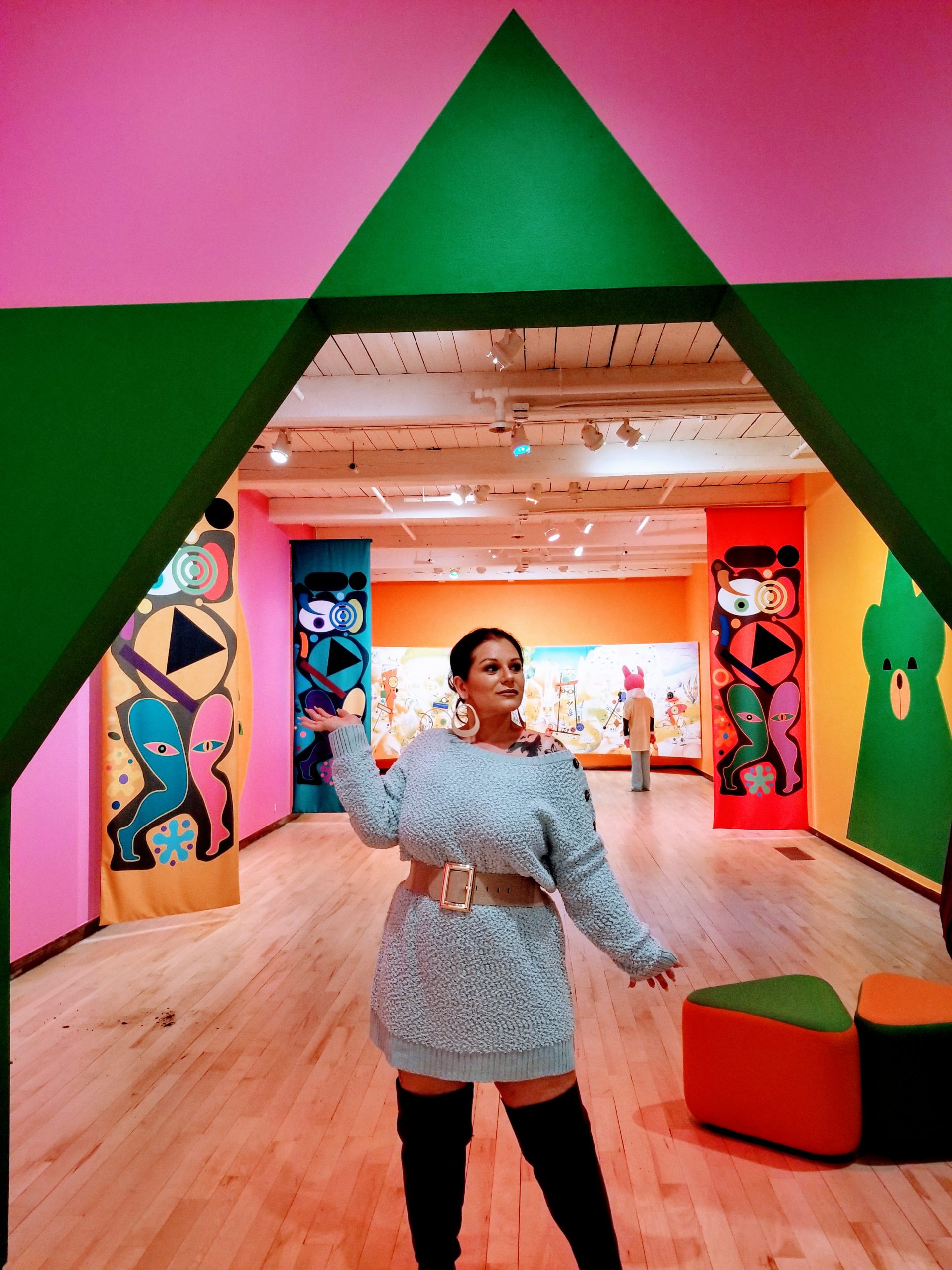 An old converted industrial factory building turned eccentric and modern museum situated on the Hoosic River; it is ‘one of the largest centers for contemporary visual art and performing arts in the United States’ according to Wikipedia. One of my favorite museums in Boston is the ICA and this museum was like ten times that. We were in our glory….ok ok…. I actually was in my glory but I think my husband enjoyed it too. We knew just by looking at this place, we were going to be here for several hours. So we opted to get a two day pass for the price of $34 dollars p/p. This pass included the MoCA as well as the Norman Rockwell Museum, about 45 min. from where we were. We decided to go with this option so we could enjoy both museums without any time restraints. I can’t even tell you how in awe I was with the MoCA. The exhibits were trendy, bright, bold, colorful, and strange all in one. Some of the exhibits we enjoyed were Ad Minoliti with her Fantasía Modulares (https://massmoca.org/event/ad-minoliti-fantasias-modulares/),